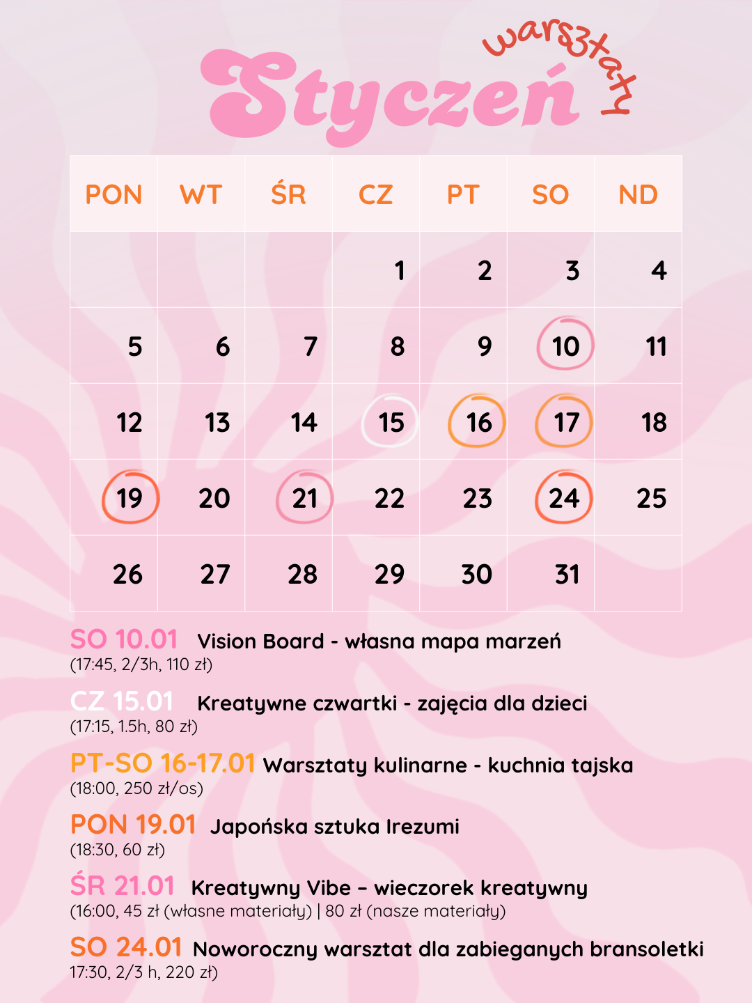 Organizujemy twórcze warsztaty, eventy i spotkania rozwojowe. To przestrzeń, w której możesz tworzyć, poznawać nowe osoby, inspirować się i po prostu poczuć się dobrze.